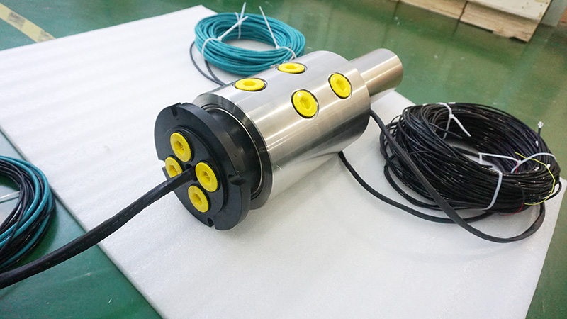 The pneumatic hydraulic electrical hybrid rotary unit is the aggregation of the pneumatic slip ring, hydraulic slip ring and electric slip ring.It is for some special application which need 360 degree rotation, meantime transmit air or liquid, signals. Most it used to high end application as oil field, ship etc.