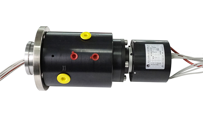 Combine the pneumatic hydraulic rotary joint with electric slip rings